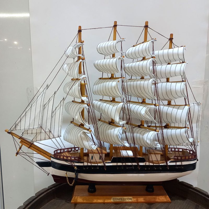 ماکت کشتی بادبانی چوبی فوق لوکس طول 40 سانتیمتری سفید
