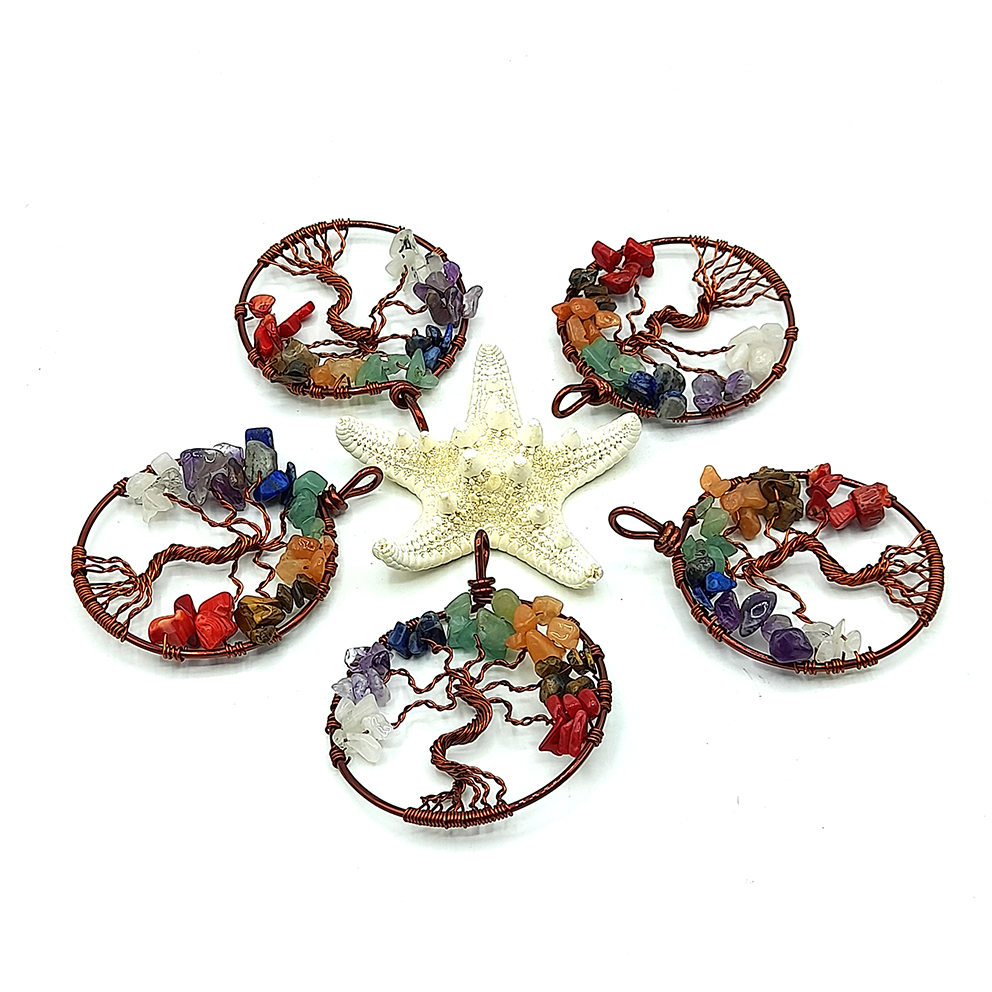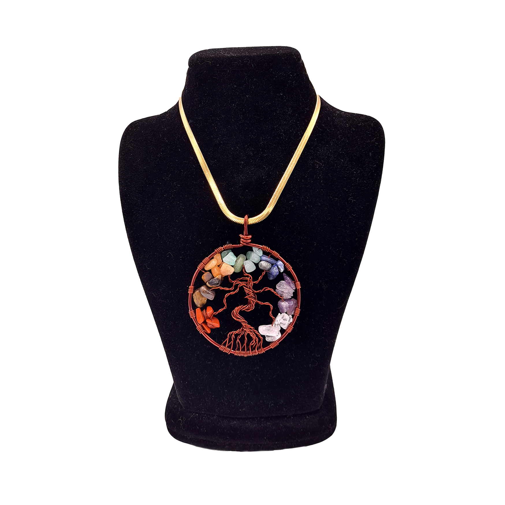 گردنبند درخت زندگی با سنگ هفت چاکرا و زنجیر استیل مدل ماری کد 12 از یک زنجیر استیل مدل ماری و همین طور آویز درخت گونه ی سنگ های هفت چاکرا تشکیل شده است. سنگ های هفت چاکرای کار شده در این گردن آویز زیبا، تاثیرات شگرفی بر سلامتی جسمی و روحی فرد می گذارند. کاهش تپش قلب ، برطرف شدن اضطراب ناشی از محیط های کاری، برطرف شدن استرس ، کسب آرامش درونی و همین طور نرمال شدن فشار خون فرد از جمله خواص مهمی است که در سنگ هفت چاکرا نهفته است .