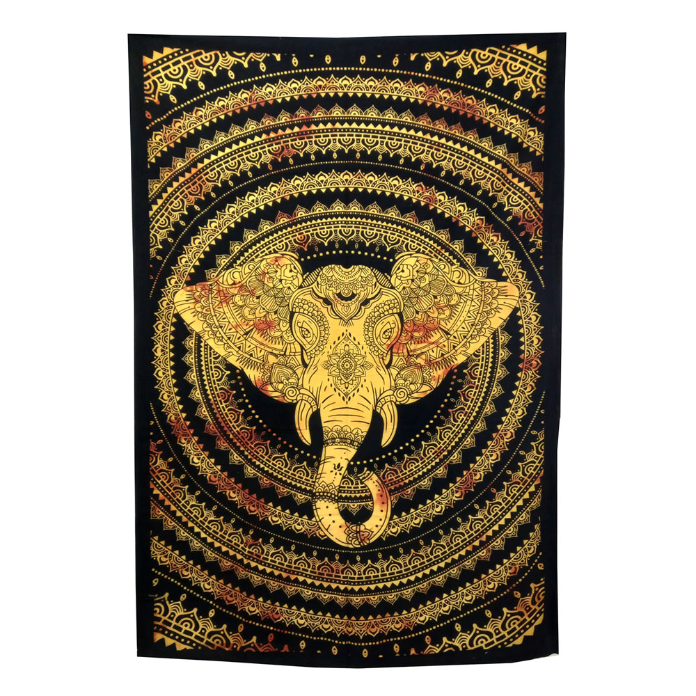 در طراحی این تپستری از ترسیم یک فیل طلایی در مرکز بکدراپ استفاده شده است که جلوه ای منحصر بفرد و چشمگیر دارد. این فیل در مرکز حلقه های نگاربندی شده اطراف خود قرار دارد و رنگ کلی زمینه ی آن مشکی می باشد.
