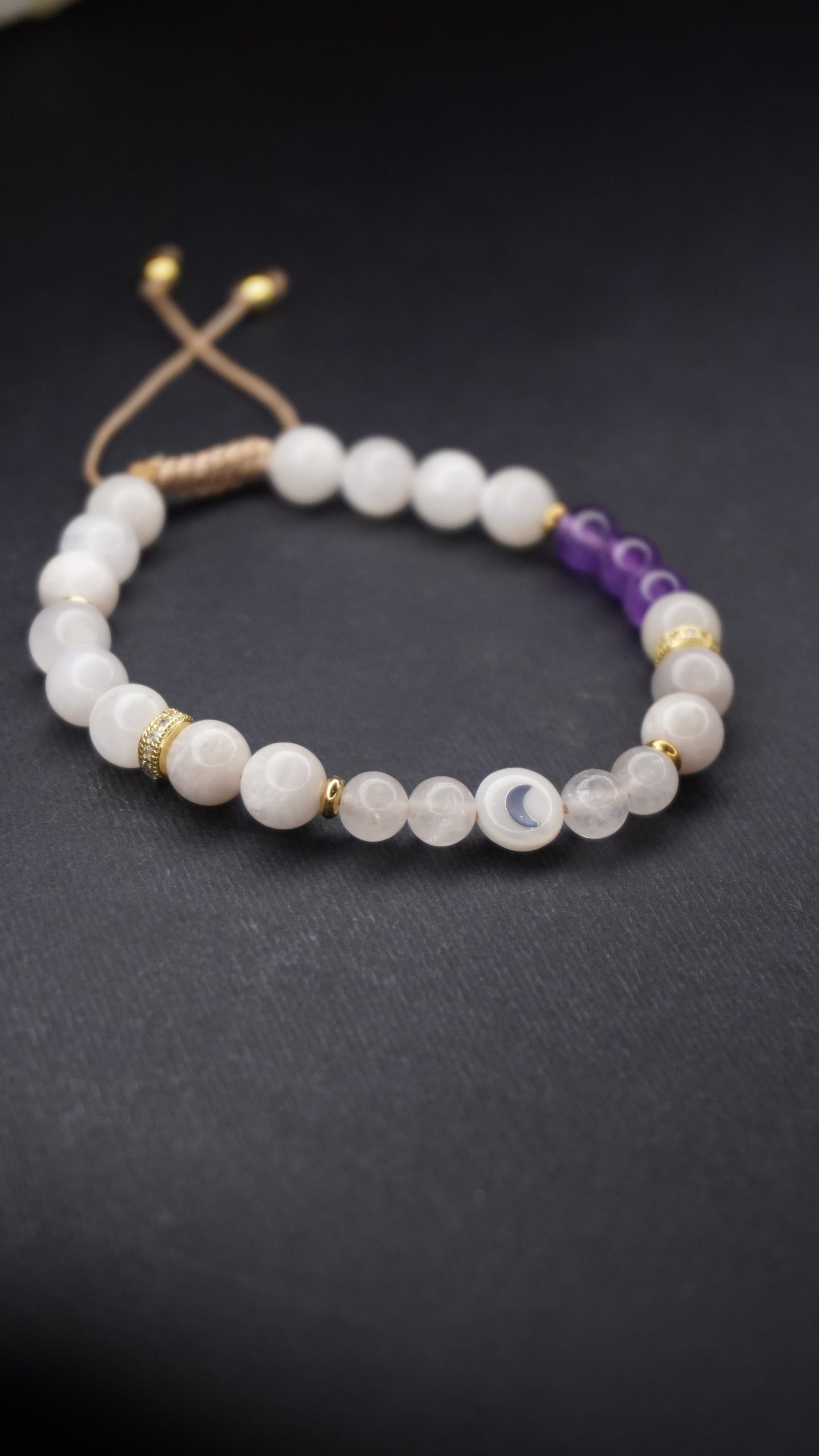 سنگ مون استون، نمادی از شهود زنانه و آرامش، به شما کمک میکند تا تعادل احساسی را تجربه کرده و ارتباط عمیقتری با خود برقرار سازید. کوارتز صورتی، سنگ عشق جهانی، چاکرای قلب شما را میگشاید و مهربانی و شفقت را در وجودتان تقویت میکند. در کنار اینها، آمیتیست با رنگ بنفش آرامشبخش خود، ذهن را تسکین داده، اضطراب را کاهش میدهد و کیفیت خواب را بهبود میبخشد. این دستبند فراتر از یک زیورآلات ساده، یک همراه معنوی است که شما را در مسیر آگاهی و هماهنگی درونی یاری میدهد و سپر محافظی در برابر انرژیهای منفی ایجاد مینماید.
