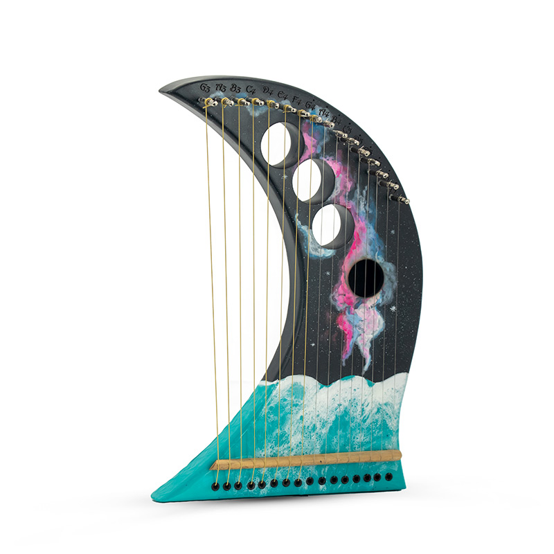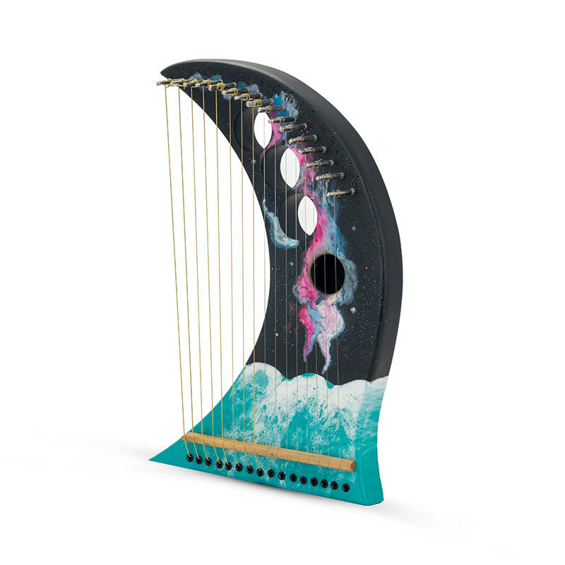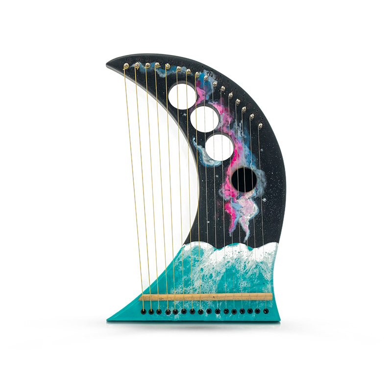 چنگ رومی بلوط طرح ماه رزینی، نه فقط یک ساز موسیقی، بلکه یک اثر هنری دلربا است که از دل طبیعت و هنر دست با وسواس خلق شده. این چنگ رومی با الهام از زیباییهای آسمان شب، توسط برند “بلوط” طراحی و ساخته شده است. بدنه این ساز از چوب اعلای آکاسیا و با تلفیق هنرمندانه رزین ساخته شده که طرح ماه درخشان روی آن، جلوهای بینظیر و عرفانی به آن میبخشد.