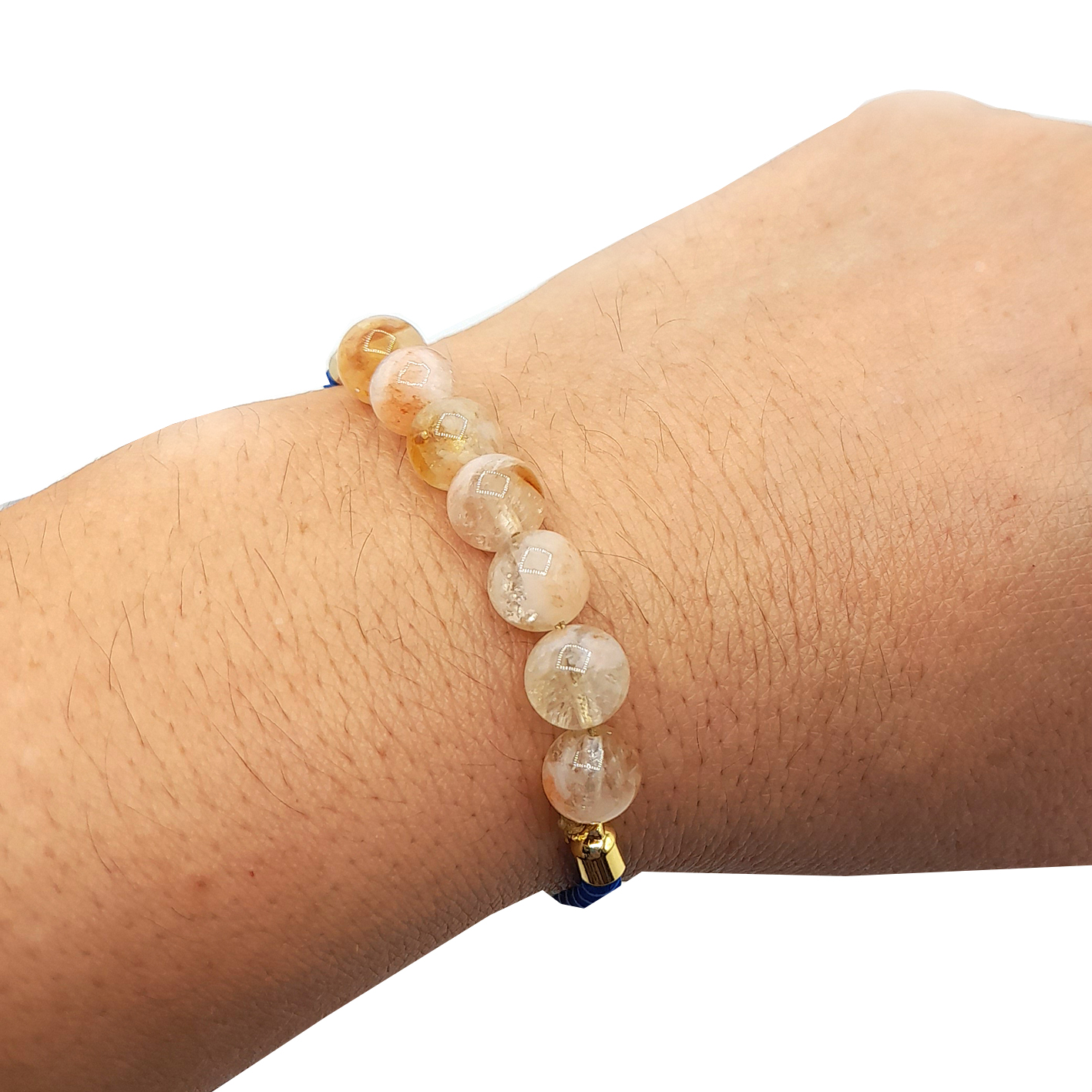 دستبند سنگی سیترین تشکیل شده از مهره هایی است که از کوارتز شفاف تشکیل شده است. از دیرباز تاکنون سیترین به عنوان یک سنگ آرامش بخش مورد استفاده قرار می گرفته است. این سنگ بر روی سیستم عصبی تاثیر زیادی دارد و باعث ایجاد حس آرامش در فرد می شود. متعادل کردن انرژی محیط اطراف سنگ و دفع انرژی های منفی یکی از اثرات بی نظیری است که دستبند کوارتز می تواند برایتان به همراه داشته باشد.