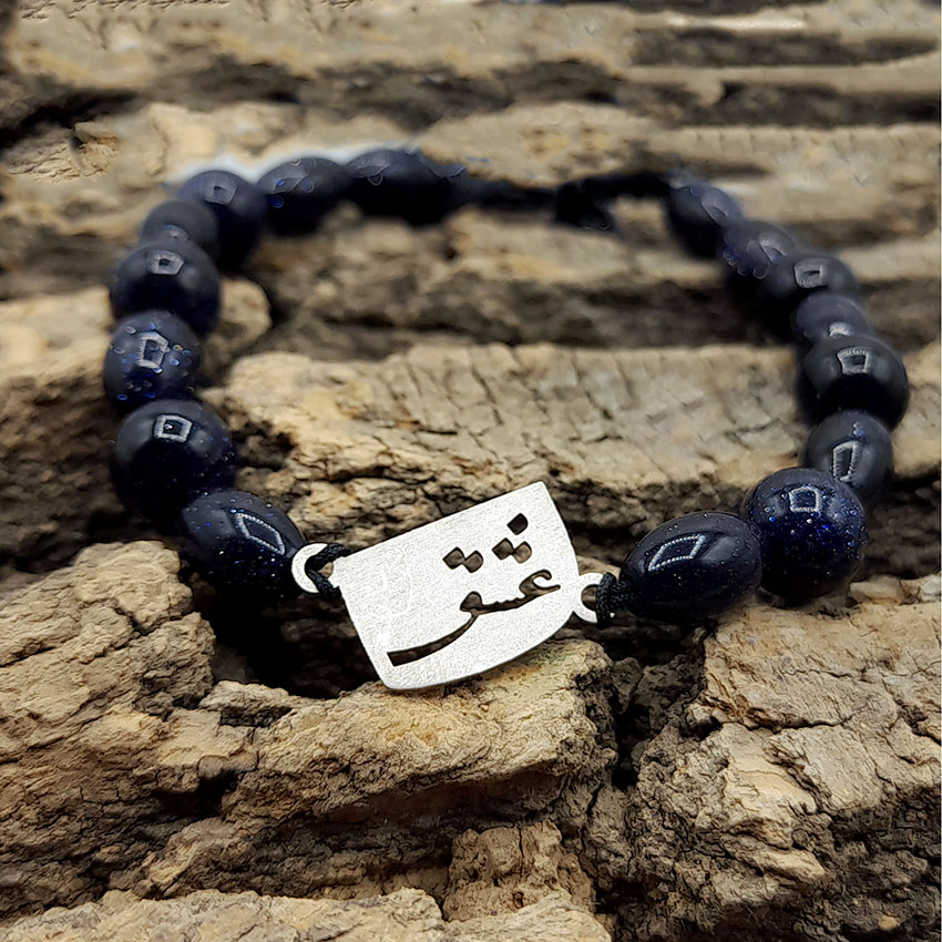 دستبند سنگی دلربا و پلاک نقره عشق کد 310133