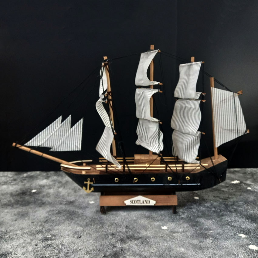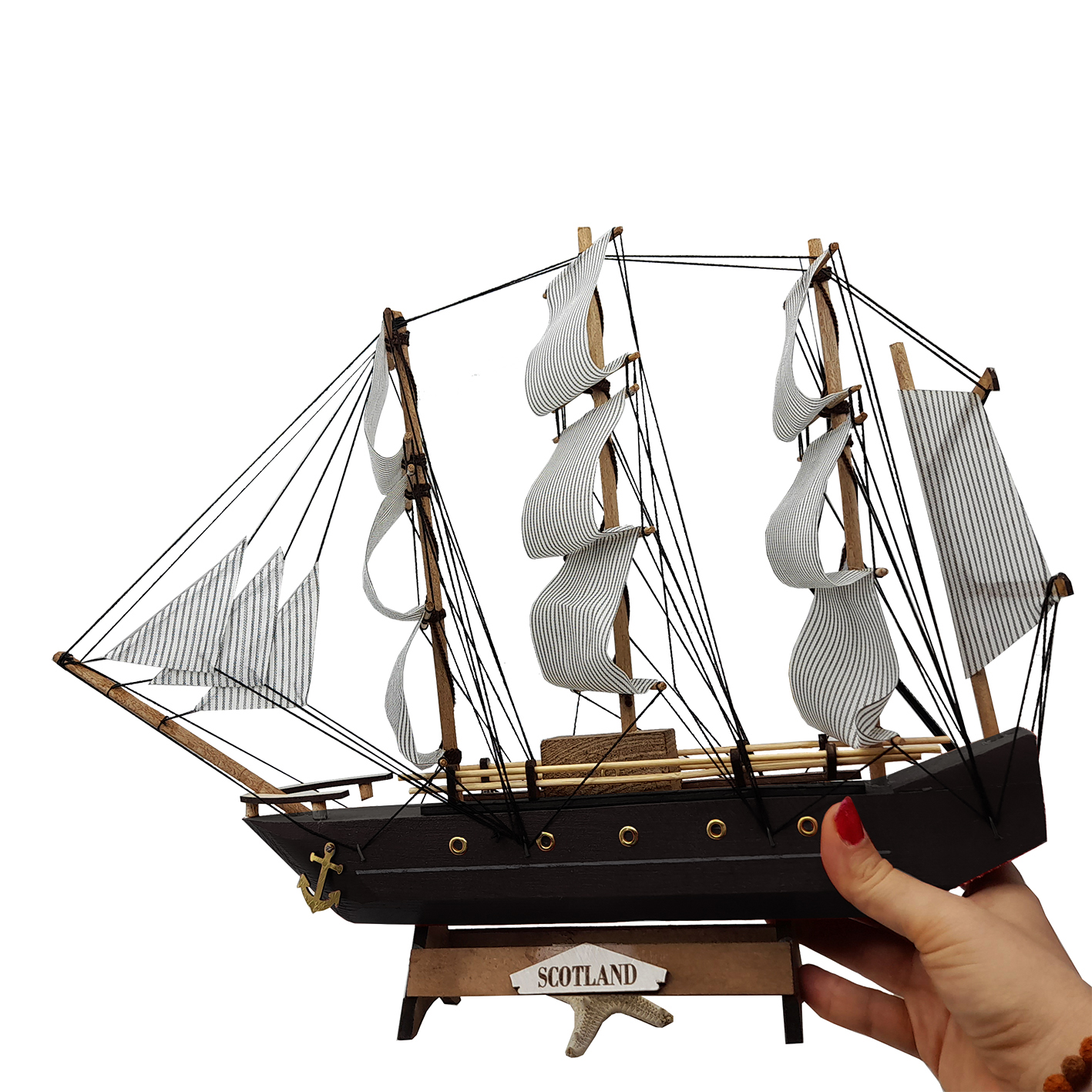 کشتی چوبی قهوه ای بادبان سفید طول 30 سانتی متر کد 720027