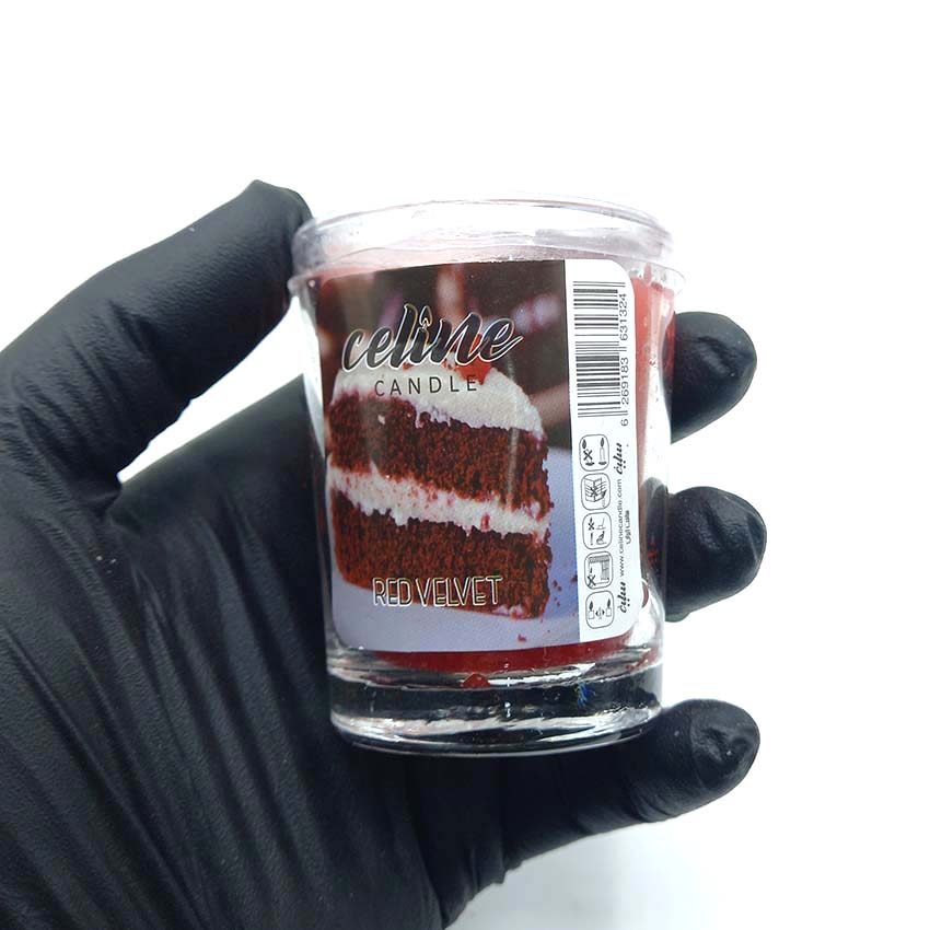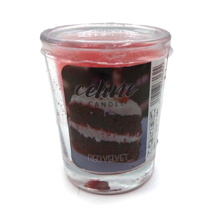 شمع معطر شیشه ای شاتی سلین مدل کیک قرمز (ردولوت) کد 550022