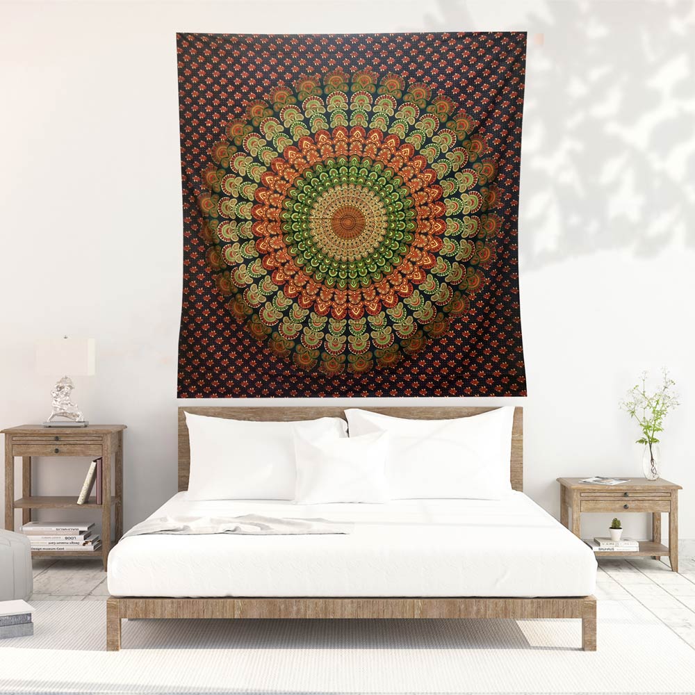 قطعا بکدراپ تپستری هندی با آن رنگ های متنوع و زیبایش، نیازتان را به بهترین شکل تامین خواهد کرد. پس زمینه طرح دار حاوی طرح های ریز روی این اثر، نمای خاصی را به آن بخشیده است. طرح بزرگ دایره ای مزین به نقوش سنتی و رنگارنگ هم این خاص بودن را افزایش داده است. طیف های مختلف رنگ سبز و نارنجی در آن، نظر هر بیننده ای را به خود جلب می کند. علاوه براین رنگ های کرم و قهوه ای نیز روی طرح های کوچک تر آن به چشم می خورند. این رنگ ها همگی طبیعی بوده و به مرور زمان تغییر نمی کنند. جنس نخی این بکدراپ هم از دیگر ویژگی های متمایز آن به شمار آمده و روی کیفیت این محصول، اثر مثبت گذاشته است.