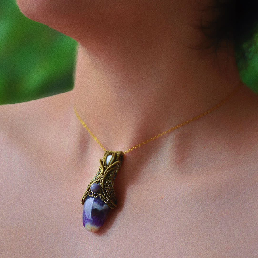 گردنبند سنگ آمیتیست معدنی دستساز کد 320095
