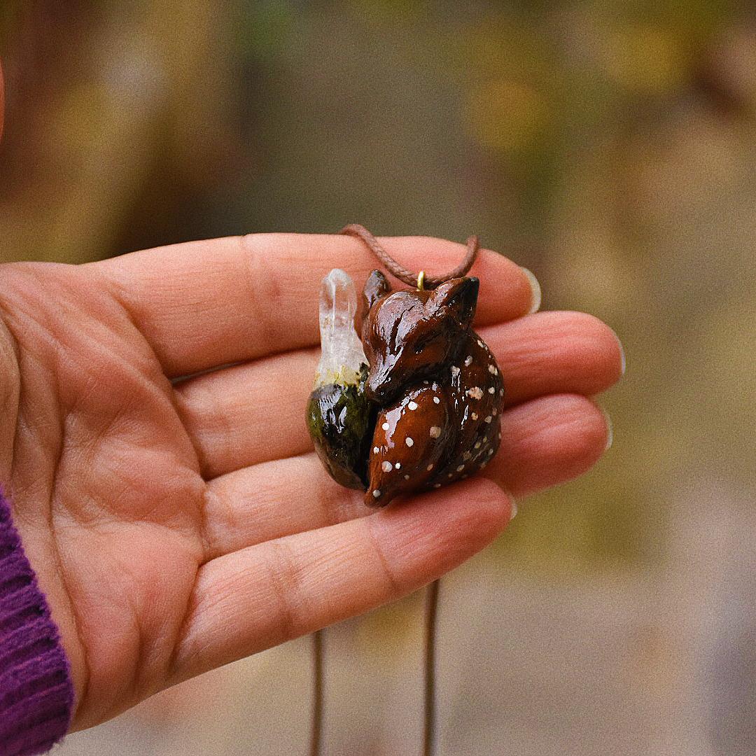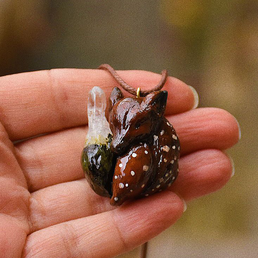 گردنبند جادویی بچه آهو با سنگ کوارتز کریستالی کد320088