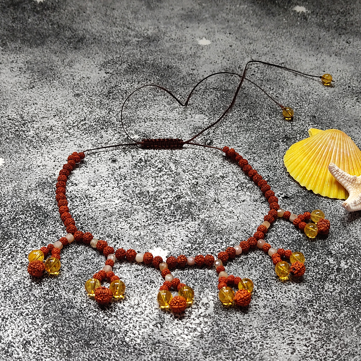 در صورتی که به دنبال خرید یک گردنبند شیک و فانتزی و منحصر بفرد برای خود و یا هدیه دادن به کسی که دوستش دارید، هستید،گردنبند سنگ سان استون، سیترین و رودراکشا مالا کد 32 را به شما پیشنهاد می دهیم. سنگ های سان استون و سیترین کار شده در این گردنبند، سرشار از خواص و فواید گوناگون برای سلامتی و ارتقای بهداشت جسم و روح می باشند. بهبود کارکرد کلیه و طحال، رفع خستگی های مزمن، افزایش سطح مثبت اندیشی و بهره مندی از شادی باطنی تنها نمونه هایی از خواص به همراه داشتن گردنبند رودراکشا، سان استون، سیترین با چنین سنگ هایی هستند.