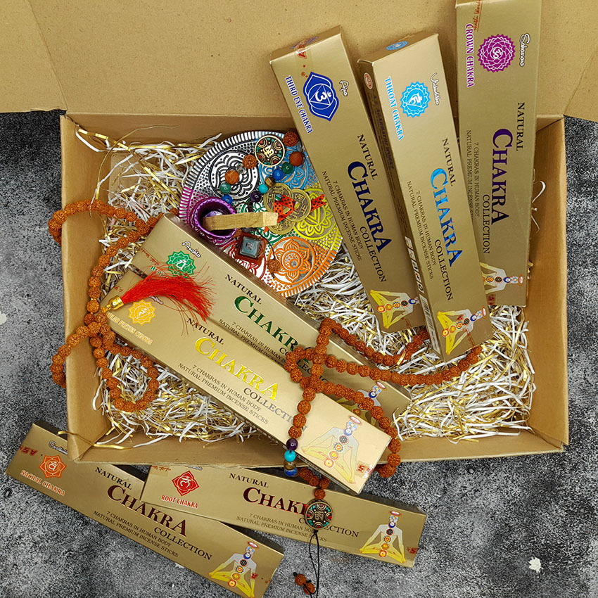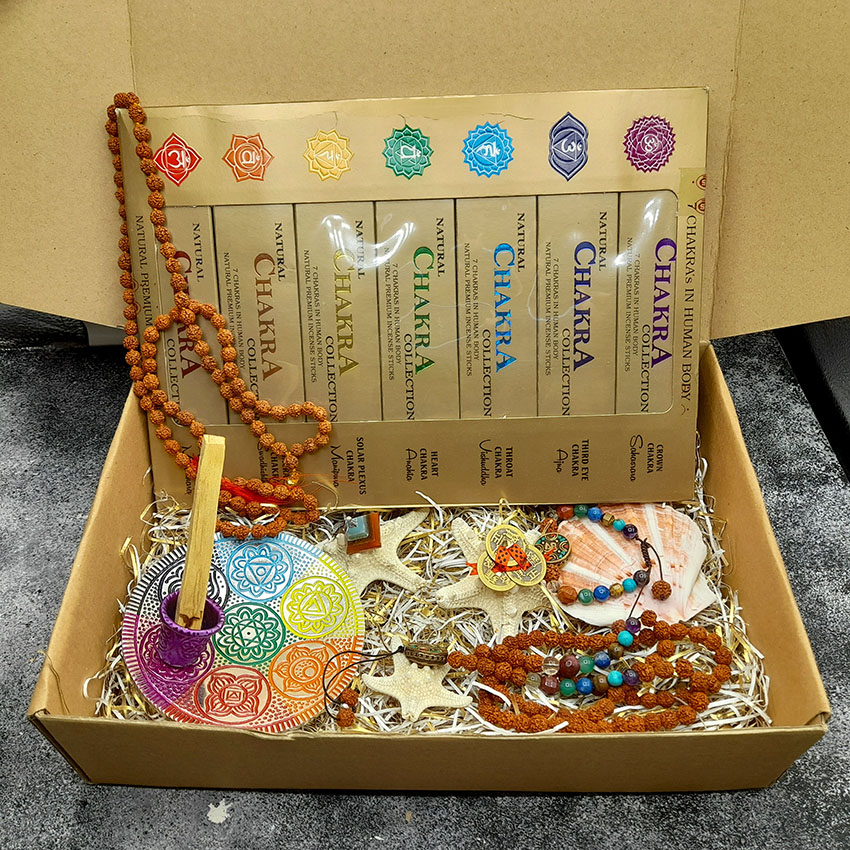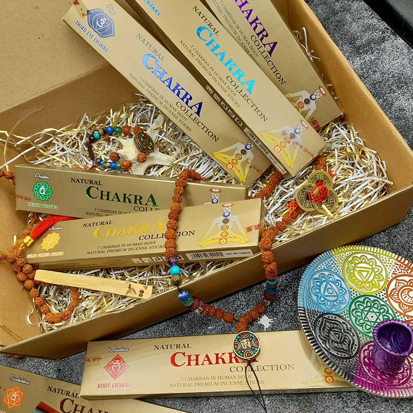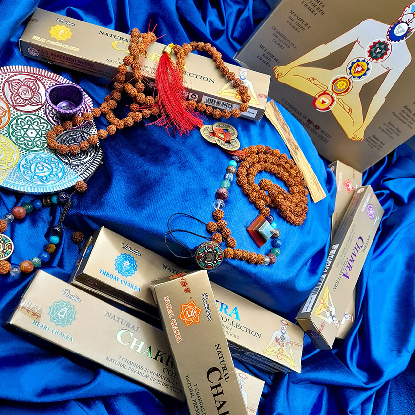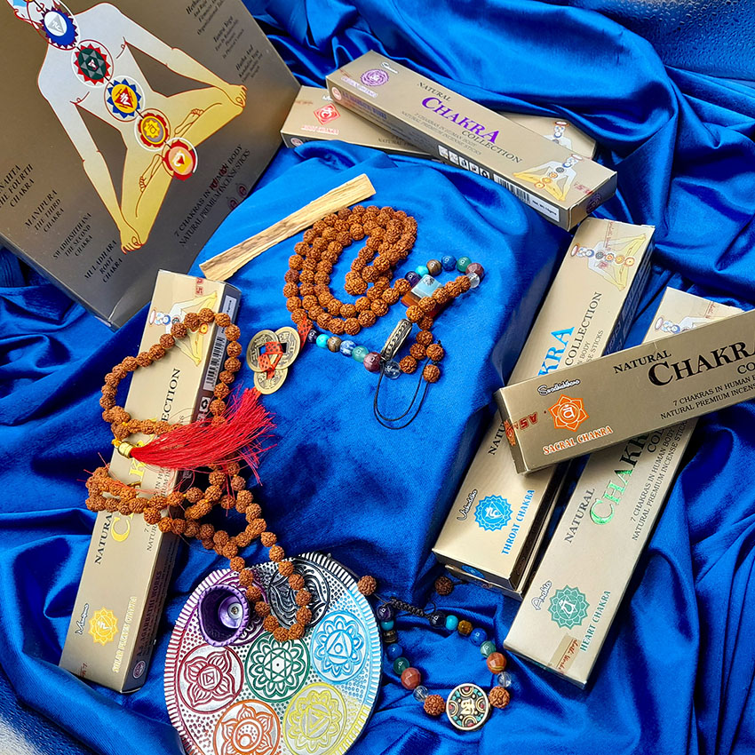 عود هفت چاکرا رودراکشا 8 میل گره دار چوب پالوسانتو هرم هفت چاکرا 2 سانتی سکه ایچینگ 3 عدد گردنبند و دستبند رودراکشا و هفت چاکرا 320039 جاعودی هفت چاکرا