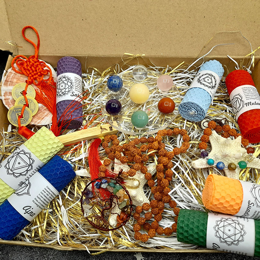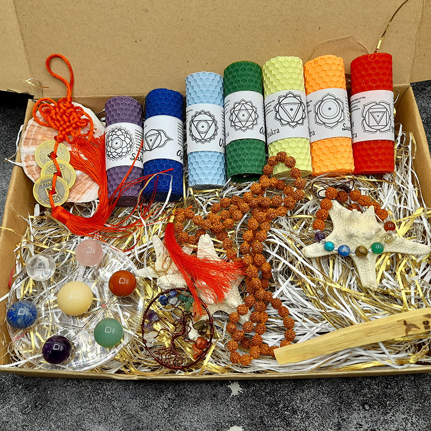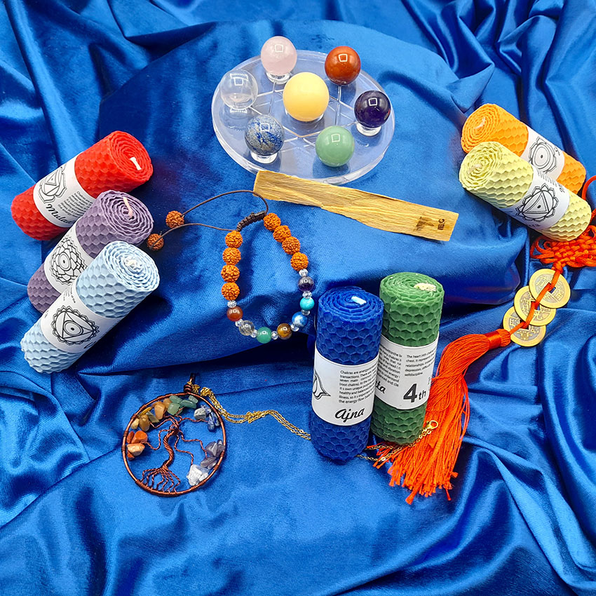 شمع هفت چاکرا گردنبند درخت زندگی هفت چاکرا 320014 دستبند هفت چاکرا 310037 آویز ایچینگ 3 عددی ست سنگ هفت چاکرا رودراکشا 8 میل گره دار
