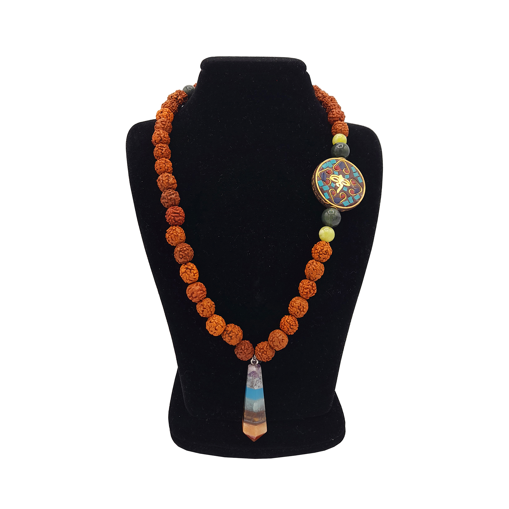 گردنبند سنگ یشم و پلاک تبتی با آویز سنگ هفت چاکرا کد 320021