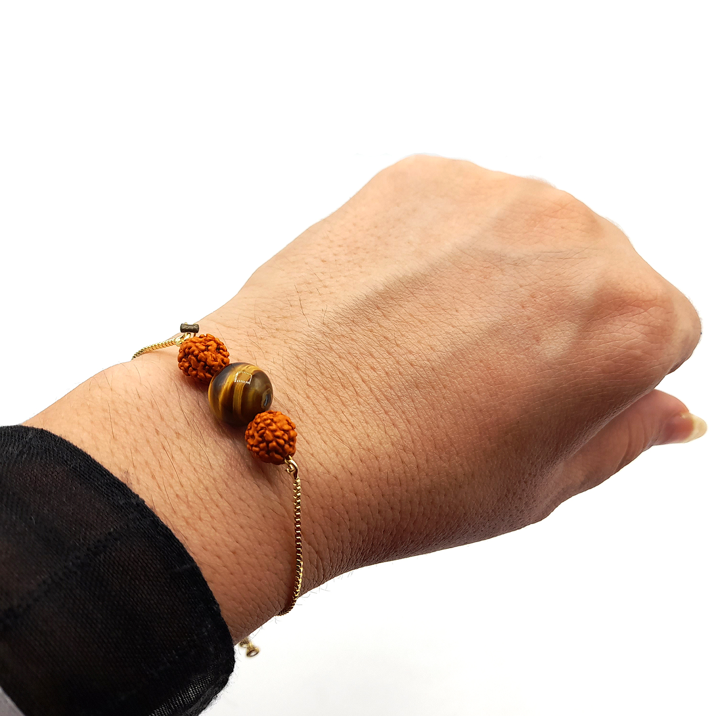 دستبند رودراکشا شما را پر انرژی و آرام می کند. این مهره های خاص و پرقدرت از درخت شیوا گرفته شده اند. در کنار رودراکشا، مهره چشم ببر هم قرار داده شده است. سنگ چشم ببر باعث می شود تا تعادل بین چاکرای دوم و سوم ایجاد شود. بدین صورت دستیابی به مادیات برایتان راحت تر می شود. چشم ببر یک سنگ ضد اضطراب است و کبد را سالم نگه می دارد. دستبند سنگ چشم ببر به همراه رودراکشا می تواند اعجازی را در سلامت روح و روان شما ایجاد کند و جسم تان را هم انرژی دوباره ببخشد. به خصوص برای افرادی که عنصر تعادل آن ها چوب است، چشم ببر یک انتخاب عالی است تا از انرژی طبیعت همسو با خود به خوبی بهره ببرند.