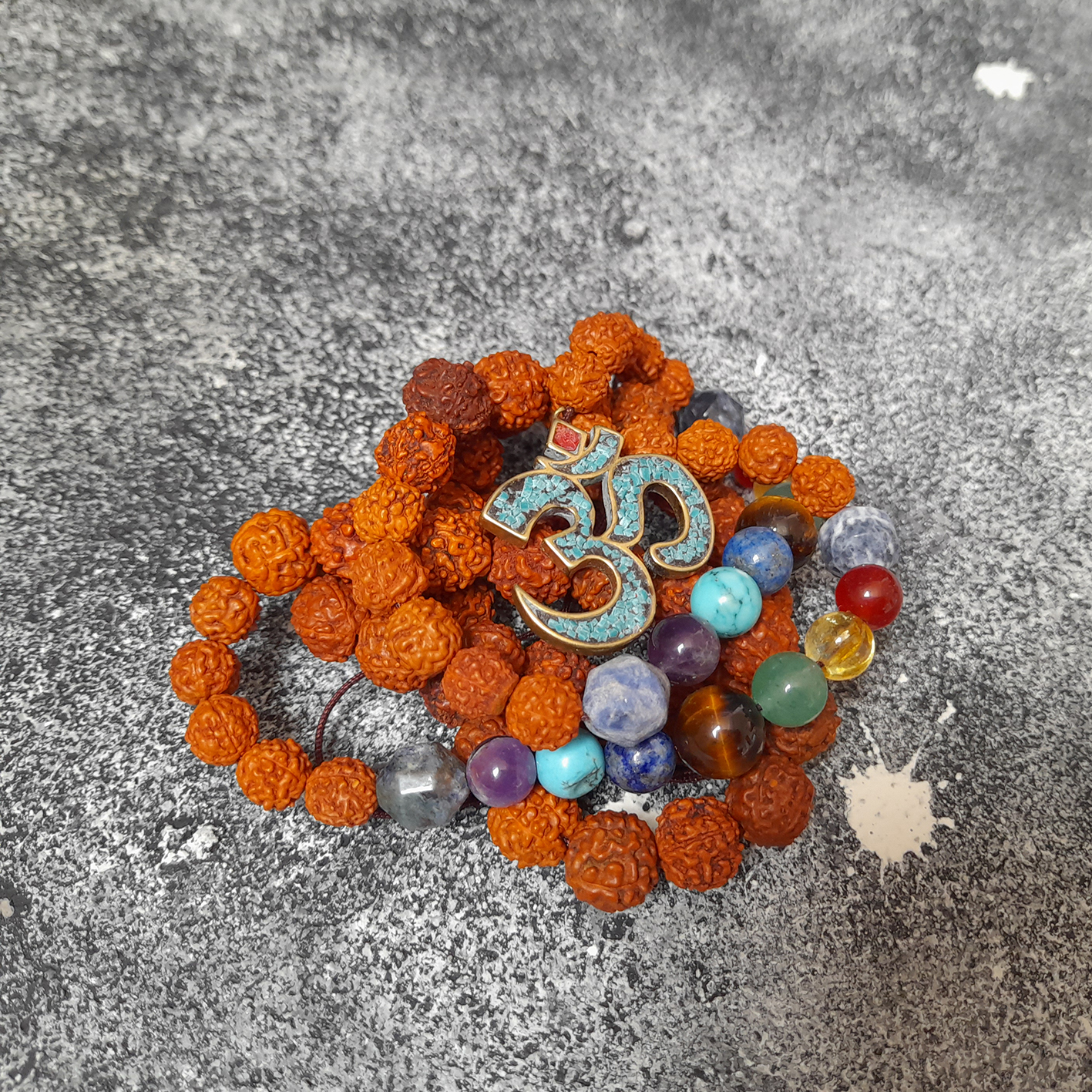 ست دستبند وگردنبند رود راکشا و هفت چاکرا وپلاک تبتی کد320039