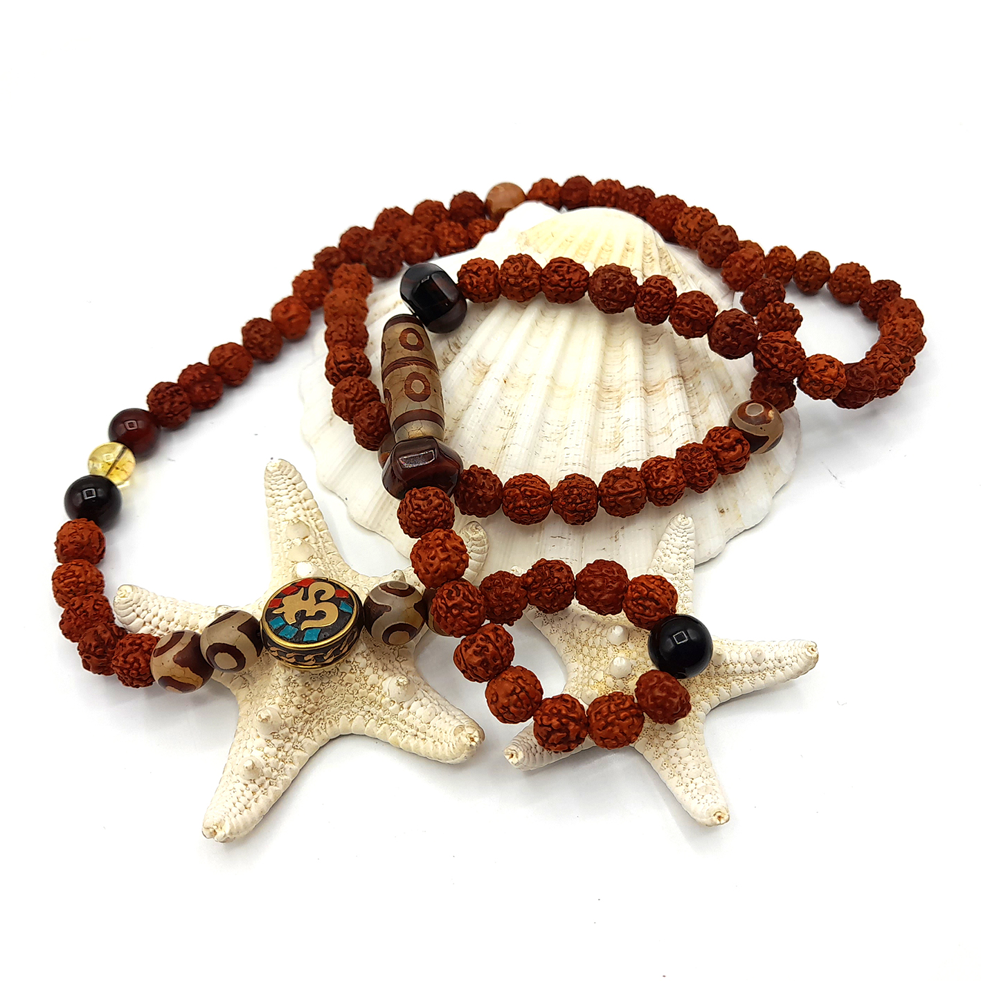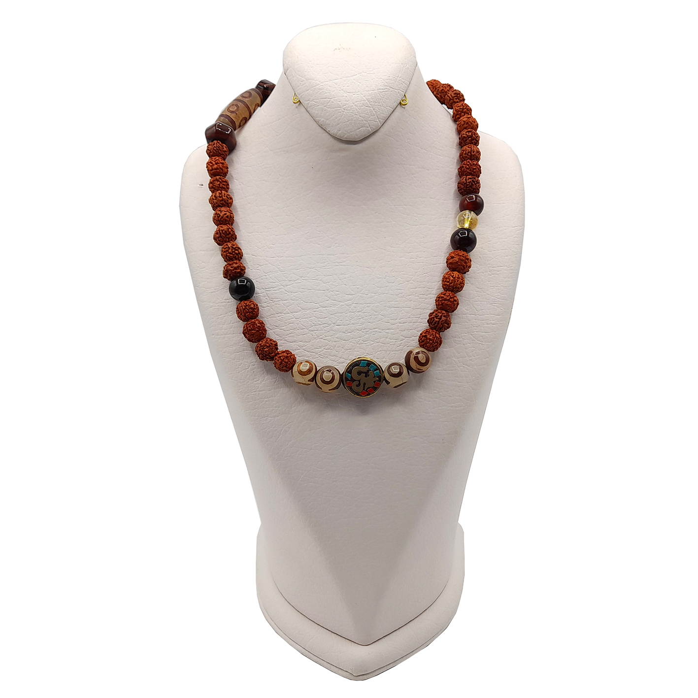 گردنبند رود راکشا وعقیق و سیترین وپلاک تبتی کد320060
