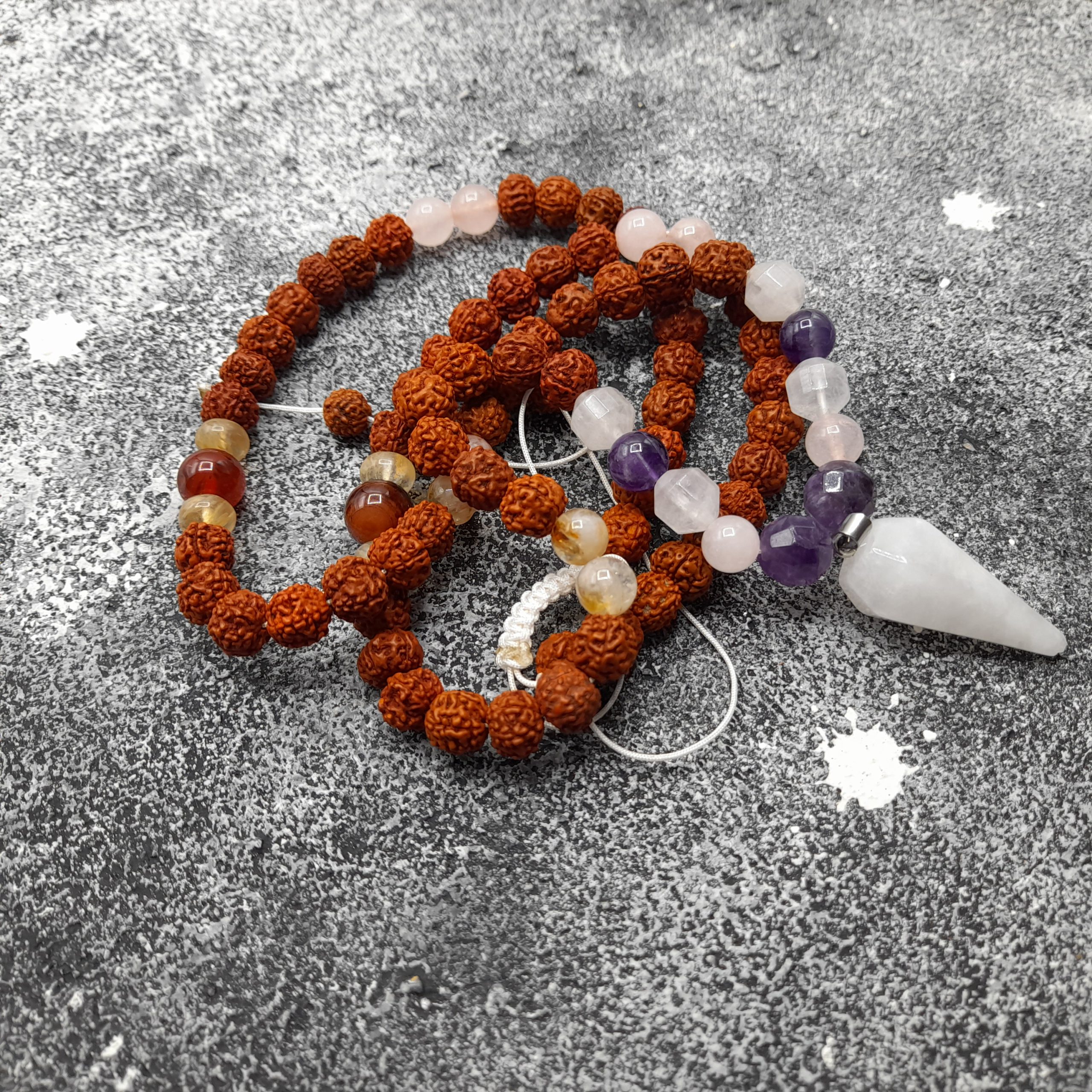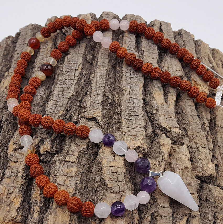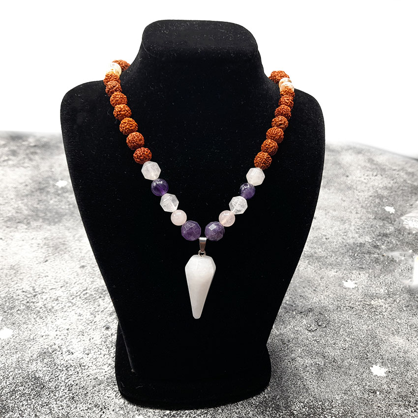 گردنبند چوب معطر صندل وآمیتیست و رز کوارتز کد 320081