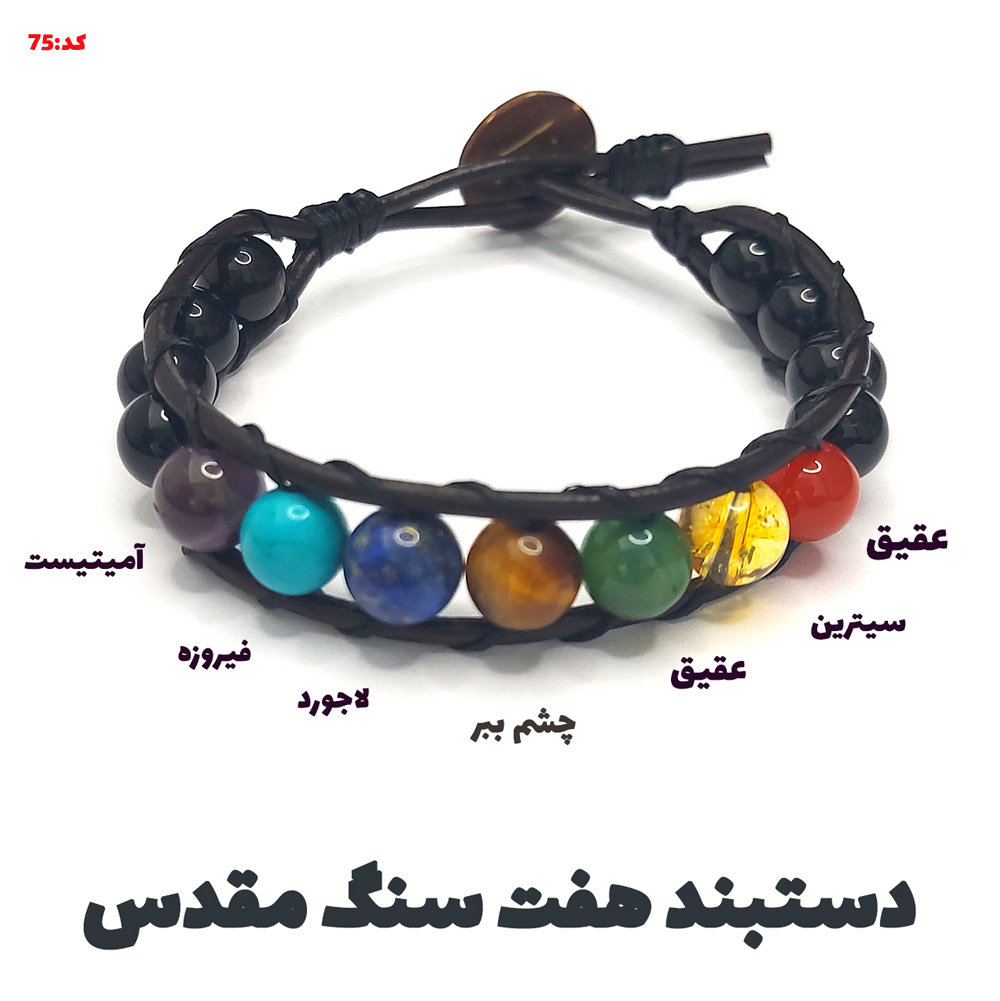 با تهیه دستبند هفت سنگ مقدس و چرم کد 75 نه تنها می توانید از جنبه زیبایی و جذابیت دائم و همیشگی آن بهره مند شوید، بلکه خواص آن هم عاید شما می گردد. در ساختار این دستبند سنگی همانطور که از نام آن هم مشخص است، بهترین سنگ های طبیعی به کار می روند. هر کدام از این سنگ ها رنگ و زیبایی خاص خود را دارد، از طرفی فوایدی هم برای شما خواهند داشت.