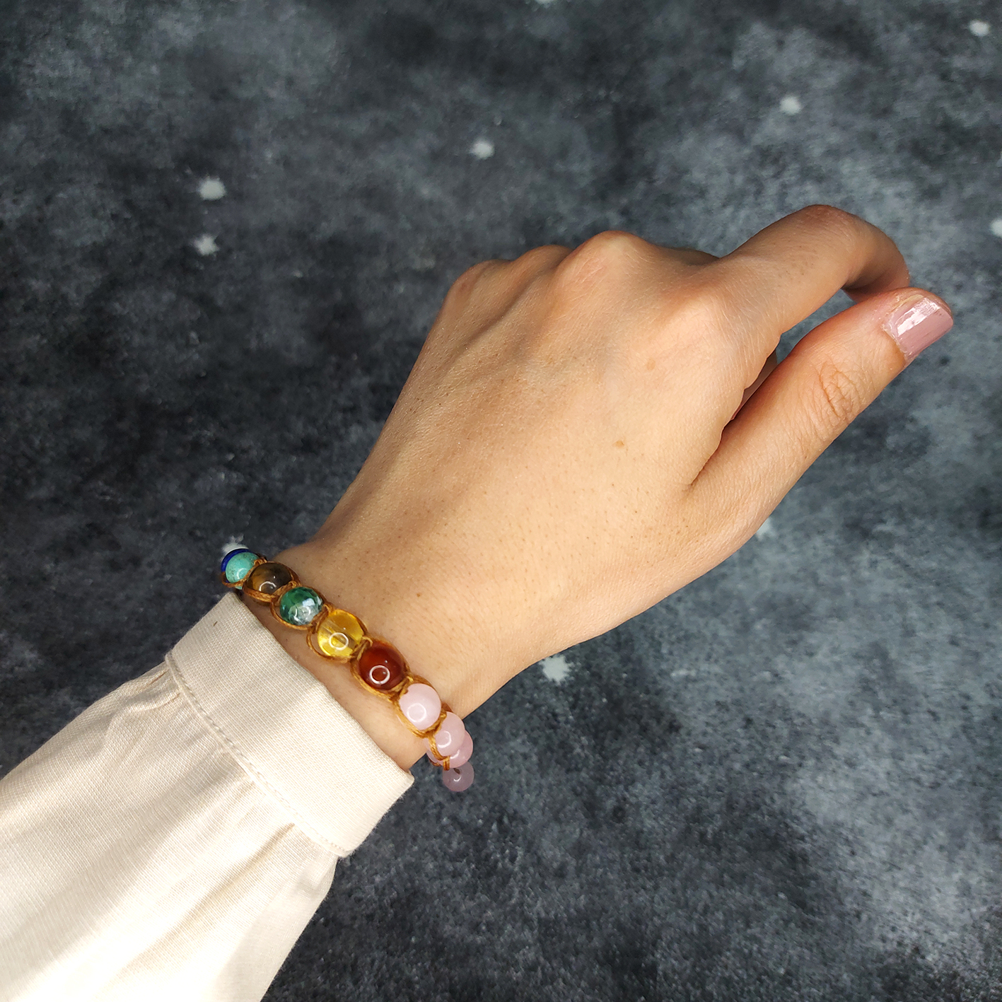 اگر به دنبال استفاده از خواص موجود در سنگ هفت چاکرا و رز کوارتز می باشید ، چرا یک دستبند سنگی حاوی این سنگ ها را تهیه نمی کنید. دستبند سنگ هفت چاکرا و رز کوارتز کد 91 یکی از انواع متعدد دستبندهای سنگی در ویترین سایت ناماسته است. این دستبند دارای خواص موجود در سنگ هفت چاکرا و سنگ رز کوارتز است که شامل مواردی نظیر تعدیل در امواج چاکراهای بدن ، کاهش دردهای استخوانی ، تقویت و بهبود عملکرد سیستم عصبی ، کاهش فشار خون بالا ، بهبود عملکرد قلب در بیماران قلبی و عروقی و … می باشد.