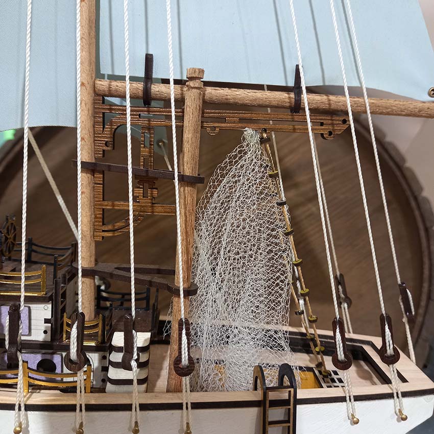 ماکت کشتی بادبانی چوبی فوق لوکس طول 40 سانتیمتری آبی