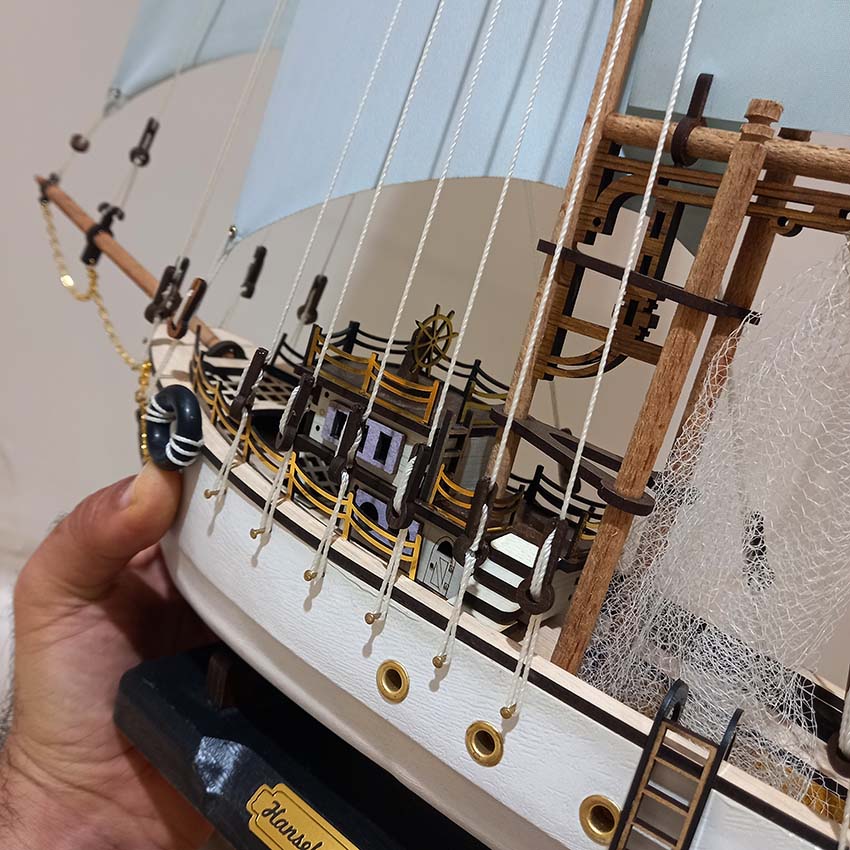 ماکت کشتی بادبانی چوبی فوق لوکس طول 40 سانتیمتری قهوه ای