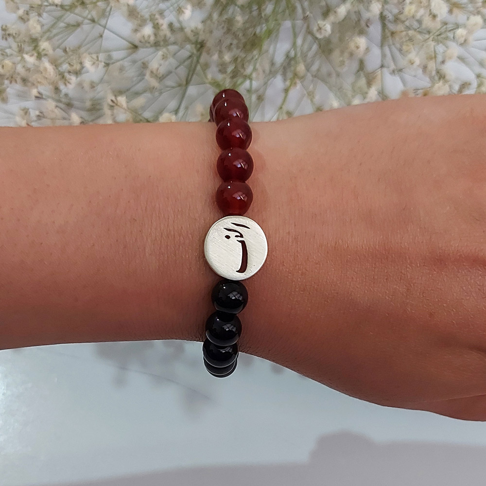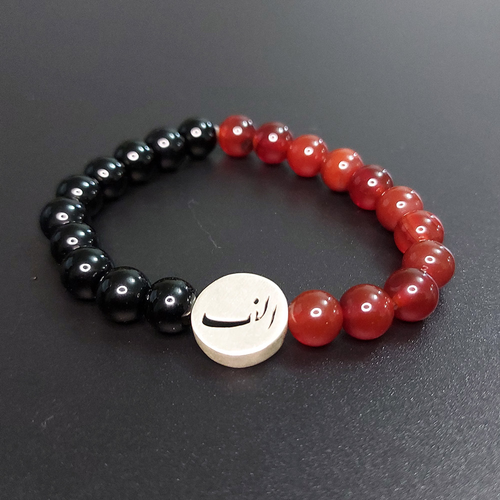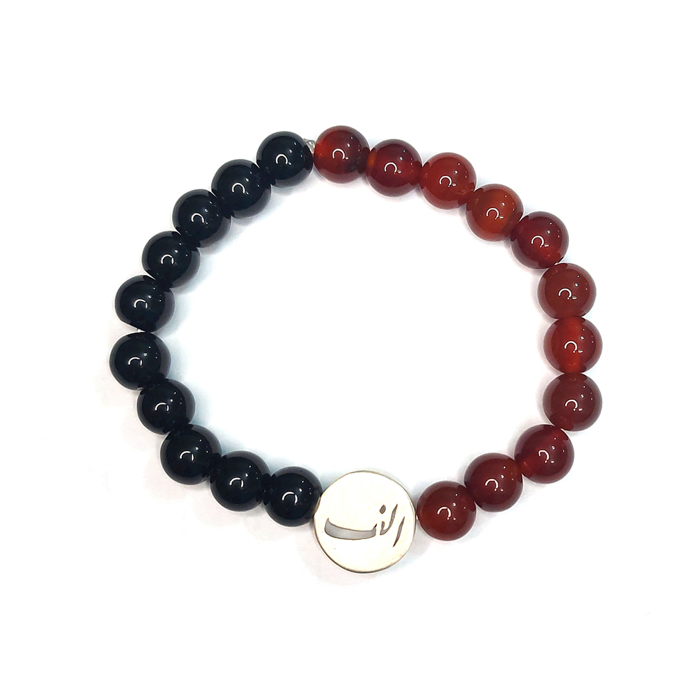 دستبند کد 10 از دو رنگ مرۀ عقیق و یک پلاک فلزی از جنس نقره در بین مهرههای عقیق ساخته شده است. این دستبند سنگی با ترکیب رنگ گرم و سادۀ خود گزینۀ ایدهآلی برای استایلهای سنّتی و تلفیقی در چهار فصل سال به حساب میآید.