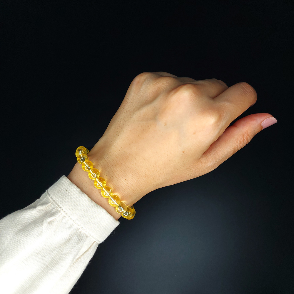 دستبند سیترین کد 49 دستبندی ظریف است که جلوه زیبایی بر روی رنگ پوست های مختلف دارد و این به دلیل رنگ زرد آن است. سنگ سیترین از خانواده کوارتز است و دارای درجه سختی 7 می باشد. این سنگ علاوه بر استفاده در صنعت طلا و جواهر سازی دارای خواصی است که از نظر روحی و جسمی تاثیرات مثبتی بر روی بدن دارد.