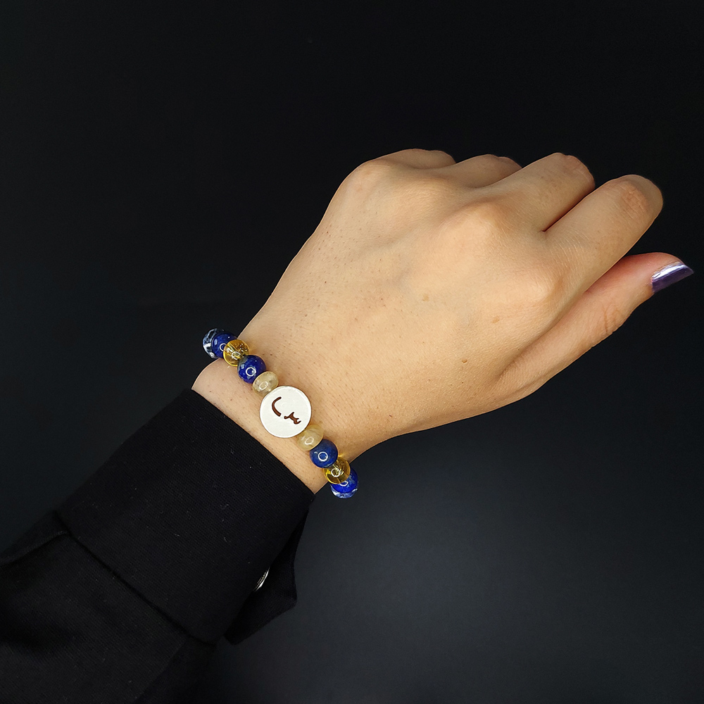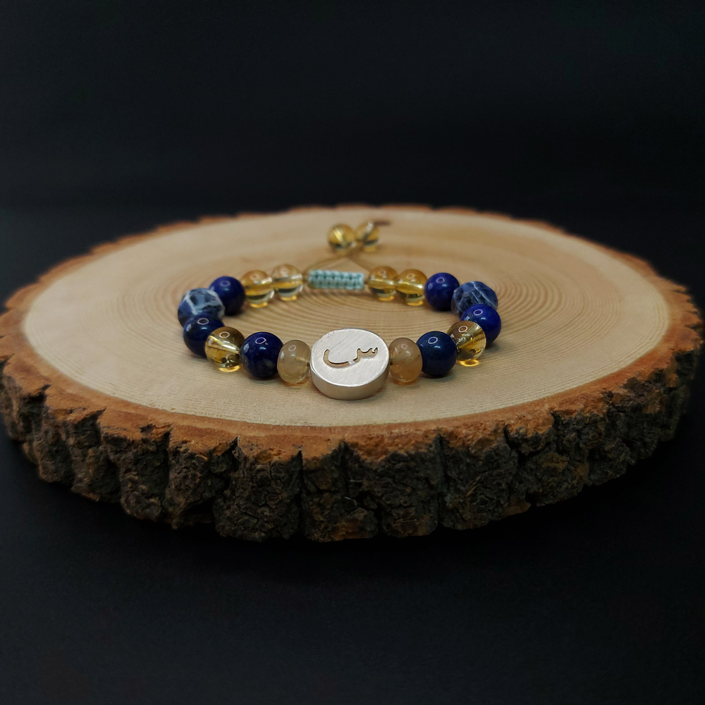 دور تا دور این دستبند سنگی فوق العاده جذاب از 2 سنگ سیترین و لاجورد احاطه شده است. این دو سنگ در جلسات چاکرا درمانی مورد استفاده قرار می گیرند و هر کدام تاثیراتی بر روح و جسم فرد دارند. سنگ سیترین با رنگ زرد درخشان خود، به شما یاد آور می شود که جواهری گرانبها برای مردمان باستان بوده است. به همراه داشتن این سنگ در طول روز شادی و نشاط و اعتماد به نفس را برای شما به ارمغان می آورد. سنگ لاجورد نیز قوای سیستم عصبی را تقویت می کند و به بهبود علائم بیخوابی و سردرد های مضمن کمک می کند. در مرکز دستبند نیز سنگ گرانبهای نقره قرار گرفته که به ثبات انرژی شخص کمک می کند. علاوه بر این، حکاکی حرف س روی سنگ نقره آن را به بهترین هدیه برای مخاطب خاص شما تبدیل کرده است.