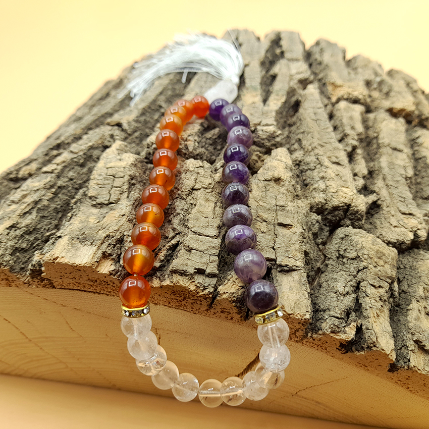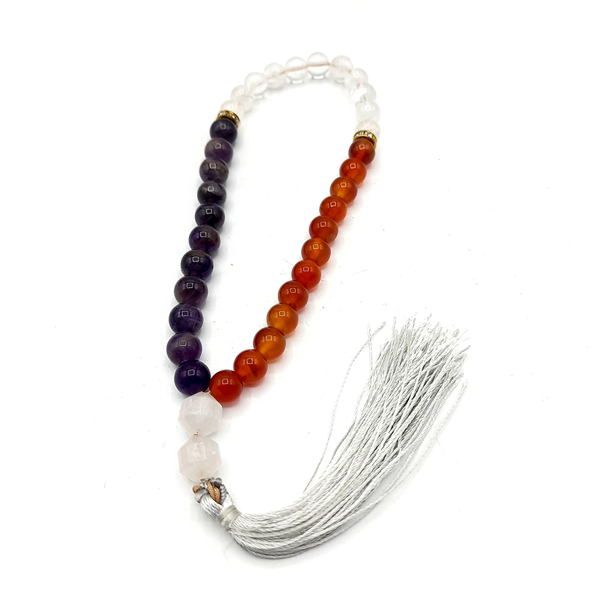 تسبیح عقیق قرمز وعقیق مشکی و رز کریستال کد630007