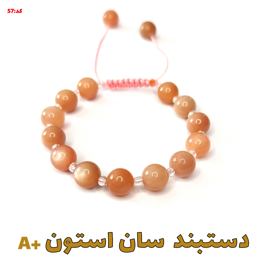 یکی فلدسپات طبیعی است که به اوپال نارنجی شباهت دارد. نوع دوم سان استون آندزیت فلدسپات می باشد. آندزیت فلدسپات دارای عنصر مس است و به همین دلیل به آن اورگون سان استون می گویند. سنگ سان استون به خاطر املاح و منابع معدنی موجود در آن تاثیرات مثبتی روی روان و روح آدمی دارد. اگر می خواهید از حس شوخ طبعی و شادی و خرسندی ذاتی بهره ببرید، همراه داشتن دستبند سان استون A+ کد 57 می تواند این فرصت را در اختیار شما بگذارد. حتی می توانید دستبند سنگی سان استون A+ کد 57 را به دوست یا عزیزی که نیازمند شادی و انرژی است هدیه بدهید و برای او روانی آرام و اعتماد به نفسی شایسته عطا کنید.