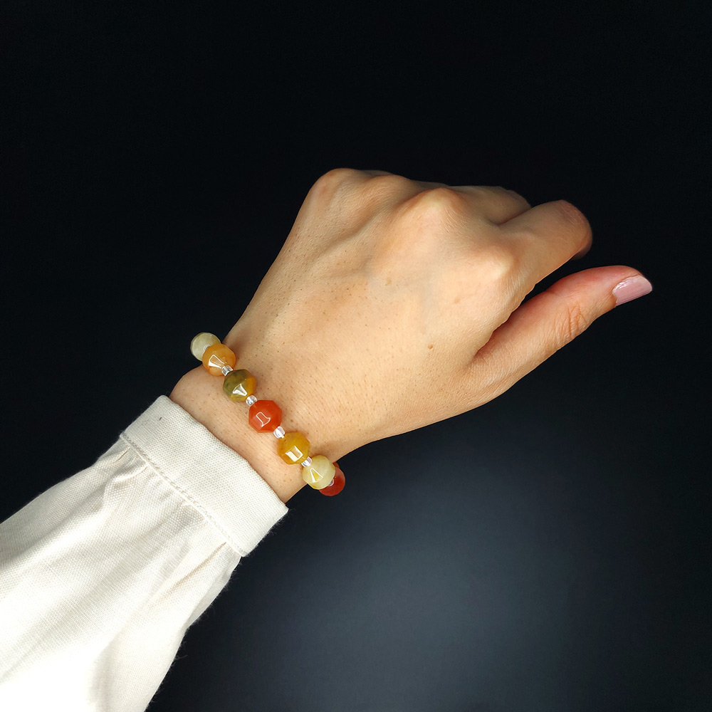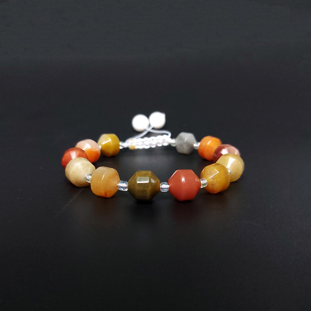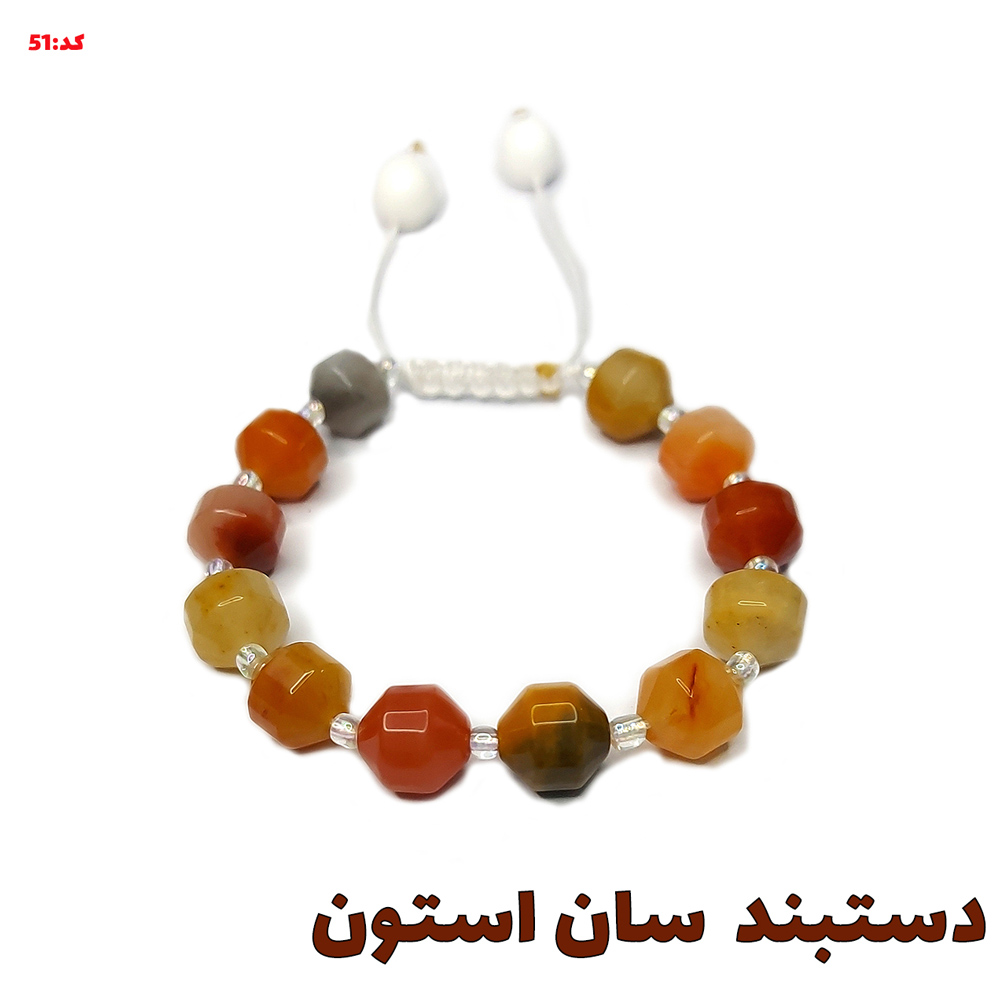 دستبند سان استون کد 51 از مهره هایی با رنگ های مختلف تولید شده است. رنگ مهره ها ممکن است بین یک تا سه رنگ متغیر دیده شود و همین موضوع جذابیت محصول را افزایش می دهد. جالب است بدانید که سان استون ها با توجه به رنگی که دارند، قیمت های متغیری نیز خواهند داشت.