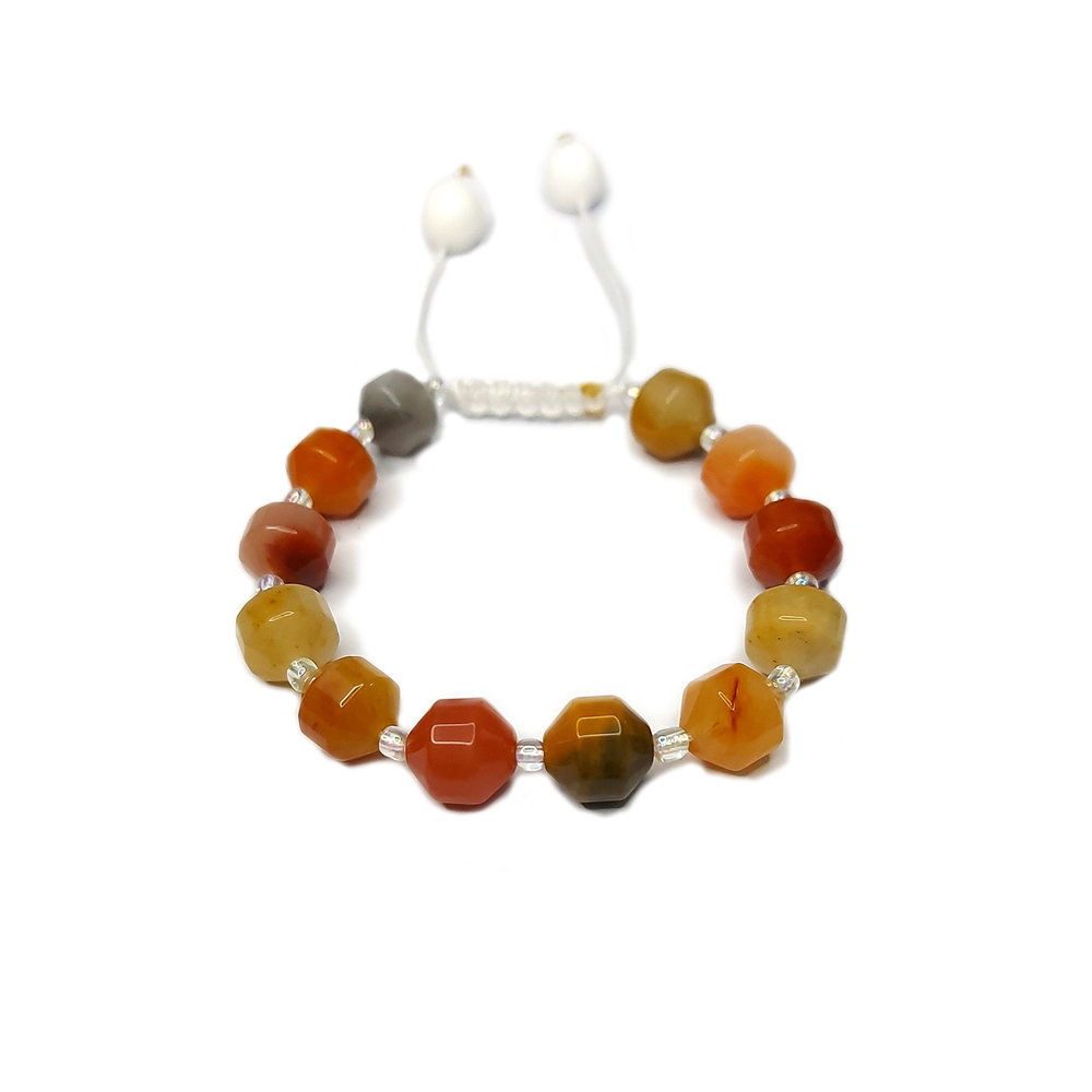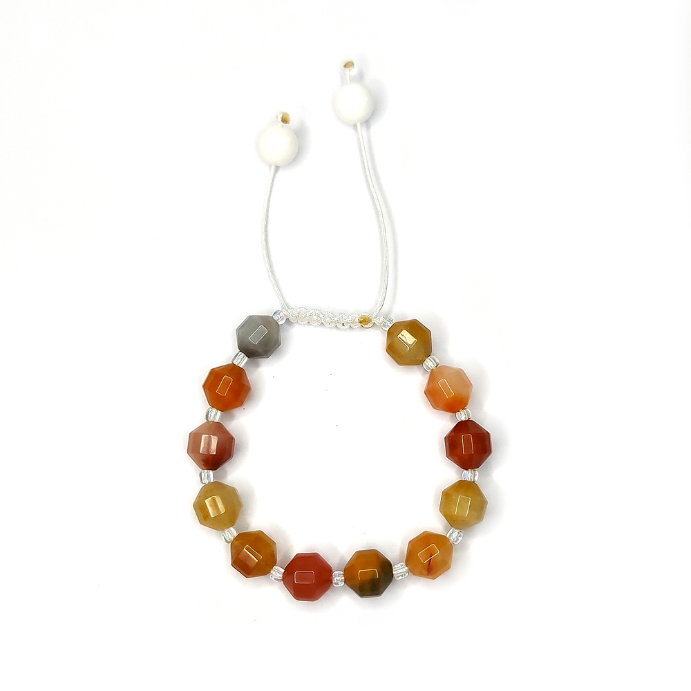 سان استون واژه ای لاتین به معنی سنگ خورشید است. دستبند سان استون کد 51 از سنگ خورشید تولید شده است. این سنگ در طیف های رنگی قرمز، قهوه ای، زرد، نارنجی و … استخراج می شود. سنگ سان استون از خانواده فلدسپار است که دارای پتاسیم می باشد. این سنگ در صنعت جواهرات به عنوان یک سنگ خاص و ویژه شناخته می شود که هر بیننده ای را به خود جذب می کند. دستبند سان استون کد 51 دارای طیف های رنگی مختلفی از این سنگ است که حالت تراش وار و صدفی سنگ را حفظ کرده است. در طراحی این دستبند سنگی از قفل گره ای استفاده شده است که هم برای سایز های مختلف مناسب است و هم می تواند به راحتی باز و بسته شود. در میان مهره های سان استون استفاده شده در دستبند مهره های ریز سنگ رز استفاده شده است که بر ظرافت محصول افزوده است.