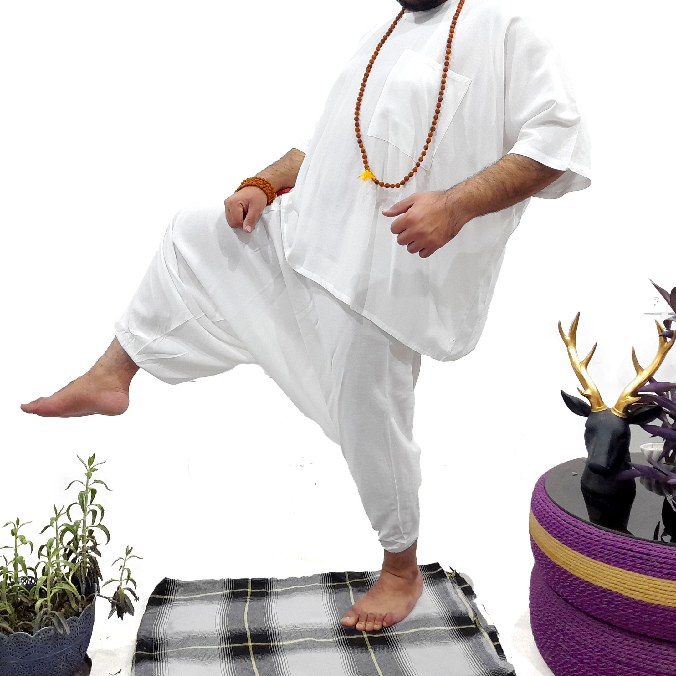 ست شلوار تبتی و پانچو سفید کد 230012