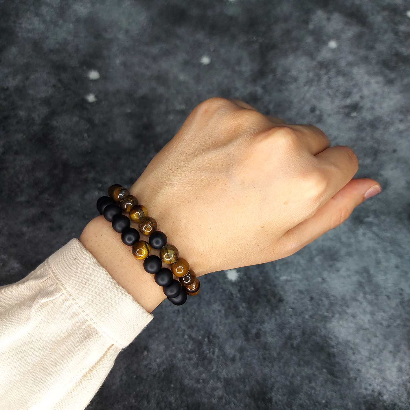 دستبند ست سنگ چشم ببر کد 89 یک ست جذاب با سنگ اونیکس است. این ست برای افراد که طیف رنگی تیره را می پسندند یک انتخاب مناسب است. این دستبند ست سنگ را شما می توانید هم به صورت ست و هم به صورت تکی استفاده کنید. قیمت مناسب این دستبند ست سنگ باعث شده است که طرفداران بسیاری داشته باشد. شما می توانید این دستبند ست را برای هدیه دادن در مناسبت هایی مانند تولد و ولنتاین انتخاب کنید. علاوه بر جذابیت و خاص بودنی که این دستبند ست سنگ دارد دارای خواص و ویژگی هایی نیز می باشد. این دستبند ست با وجود اینکه می تواند برای هر رنگ پوستی مناسب باشد اما یک انتخاب بی نظیر برای افراد با رنگ پوست روشن است. رنگ مشکی اونیکس اصولا با هر رنگ لباسی ست می شود. اما در مورد رنگ دستبند سنگ چشم ببر کمی دقت به خرج دهید. این دستبند را می توان یک اکسسوری ساده اما شیک محسوب کرد.